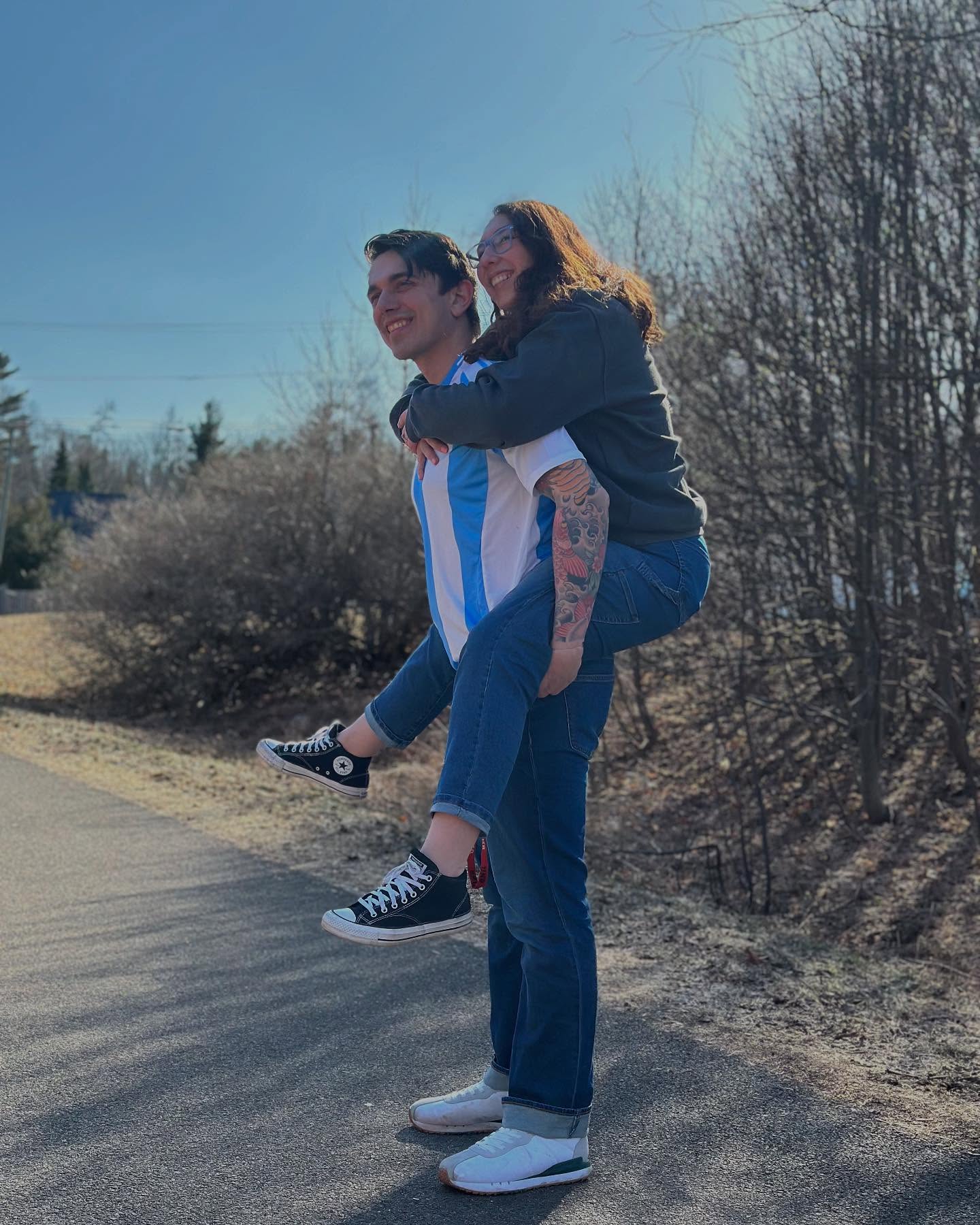 Jenn moved to Canada in December of 2021 from her home country of Argentina, and lucky for Sam, she chose to move to Fredericton, NB. Then in September of 2024, they would finally meet for the first time. After having matched on Bumble, Jenn made the first move with a simple "Hi Sam! 😊", the conversation flowed from there. Shortly after, they continued talking and eventually scheduled their first date at an Indian restaurant owned by Sam's friend, "Swaad of India". Sam ordered the Butter Chicken and Jenn ordered the Chickpea Tikka Masala, the food was amazing and the conversation was very easy and natural, it felt as though they were long time friends, right from the start. They already scheduled a second date during dinner. After dinner they went back to Jenn's place and continued talking for hours, laughing and telling stories, continuing to learn more about eachother. Over the coming weeks, they continued to go on many fun dates, and started to hang out almost every day.